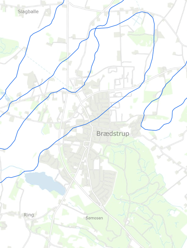 På kortet herunder kan du se, hvilket område vi henter vandet fra.